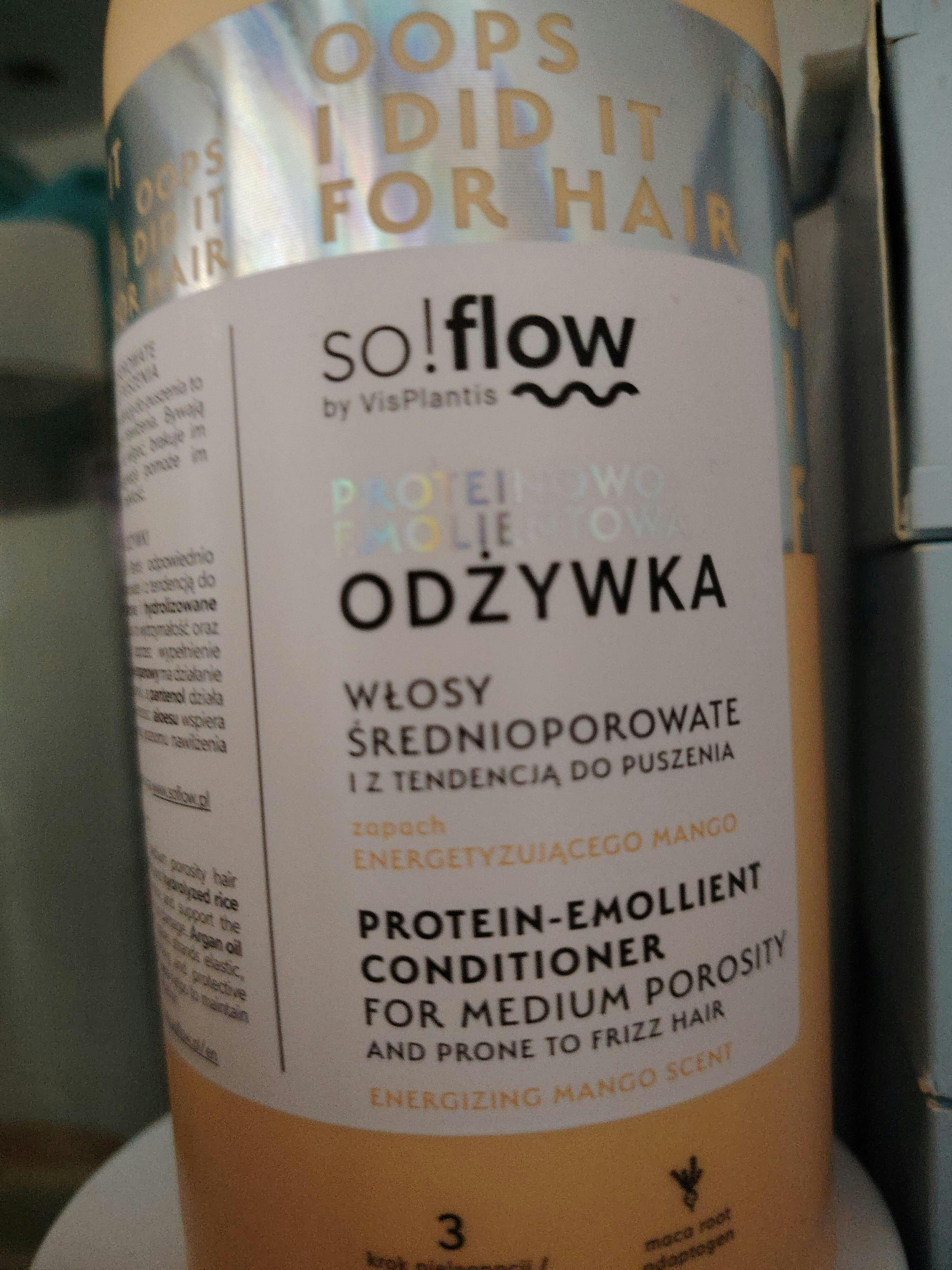 Fehérje-lágyító kondicionáló a közepesen porózus hajra, amely lehetővé teszi az ápolást a PEH egyensúly jegyében. A kondicionáló erősíti a hajat, hidratálja és védi a károsító tényezőktől. Az adaptogén maca gyökeret is tartalmazza, amely védő hatású és gátolja a hajhullást. Mindezt az energetizáló mangó kellemes illata teszi teljessé. A so!flow by Vis Plantis kondicionáló gondoskodik a közepesen hajlamos és göndör hajról. A vegán keratin és a hidrolizált rizsfehérjék, növelik erejüket és elősegítik a regenerálódást a hiányok vagy sérülések kitöltésével. Az argánolaj védő hatású és rugalmasabbá teszi a szálakat, a panthenol pedig nyugtató és védő hatású. Az aloe vera jelenléte támogatja a haj hidratáltsági szintjének fenntartását.