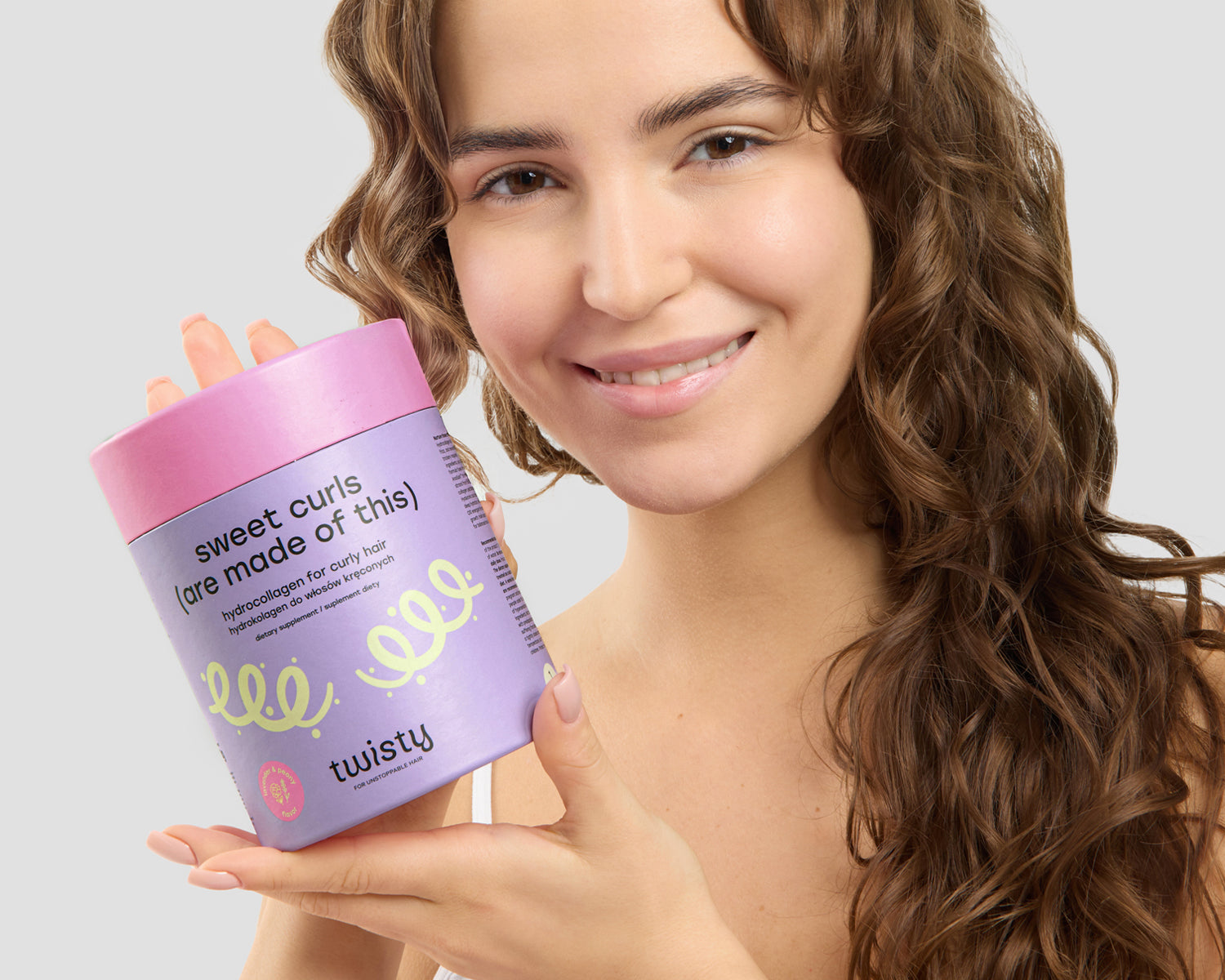 A Twisty hidrokollagén az első a piacon elérhető, kifejezetten göndör hajra fejlesztett kollagén, amely belülről gondoskodik a megfelelő hidratálásról. Formulája a hidrolizált Naticol® kollagént, amely erősíti a haj szerkezetét, biotinnal, cinkkel és Q10 koenzimmel ötvözi, amelyek támogatják a hajhagymák megfelelő működését és az egészséges hajnövekedést. A kutatásokkal igazolt hatékonyságú AnaGain™ komplex, amely csírázó borsómag kivonatot tartalmaz, segíthet csökkenteni a hajhullást, míg a hialuronsav és a C vitamin elősegítik az optimális hidratáltsági szint fenntartását. A hidrokollagén a száraz, töredezett, legyengült vagy extra hidratálást igénylő haj igényeire ad választ. Rendszeres alkalmazása belülről támogatja a hajat, javítja annak rugalmasságát, és hozzájárulhat a hullámos és göndör haj jobb formájához és definiáltságához.